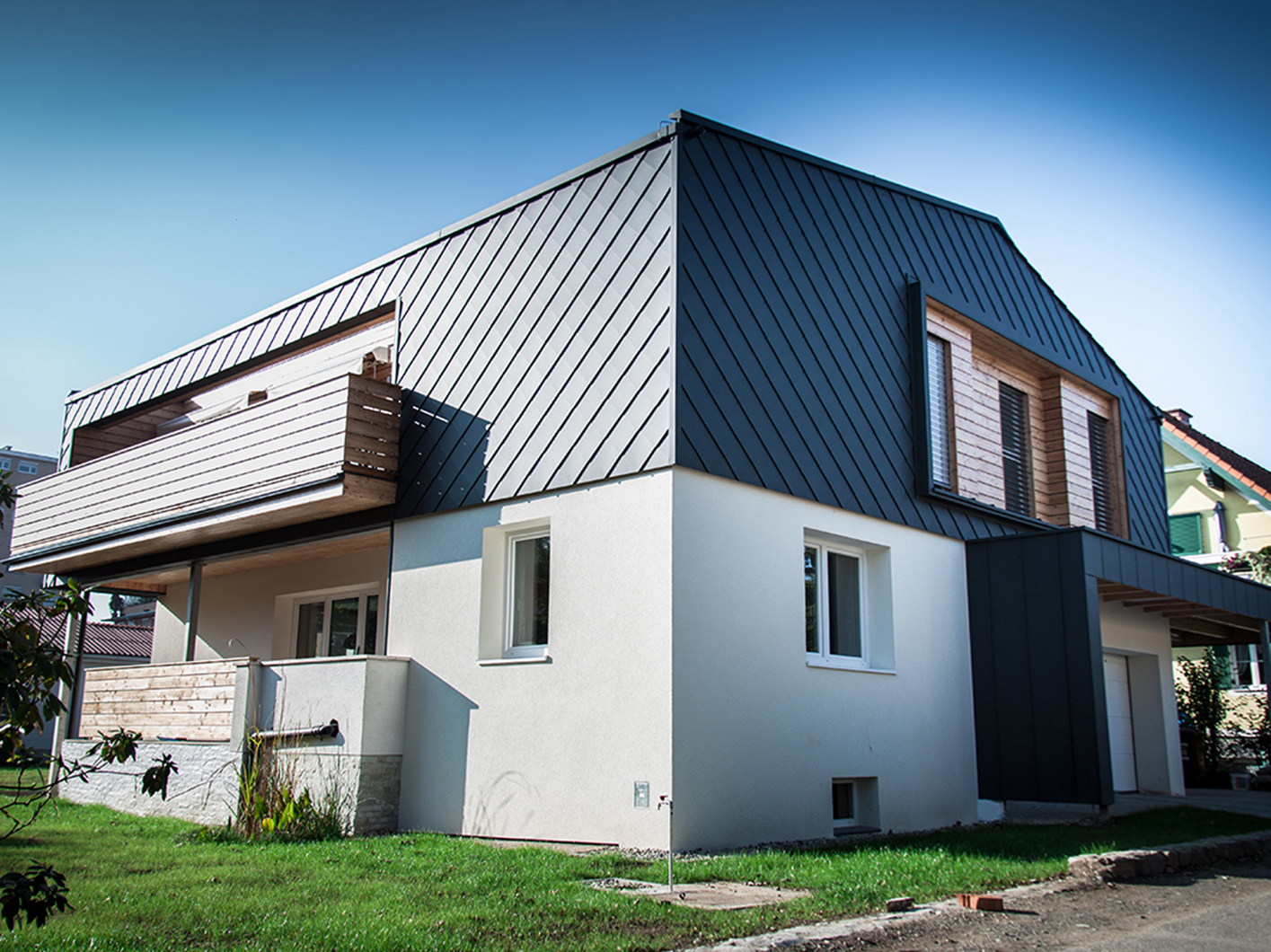 Ein nach Kundenwunsch geplantes, aus Holz gefertigtes Haus.
